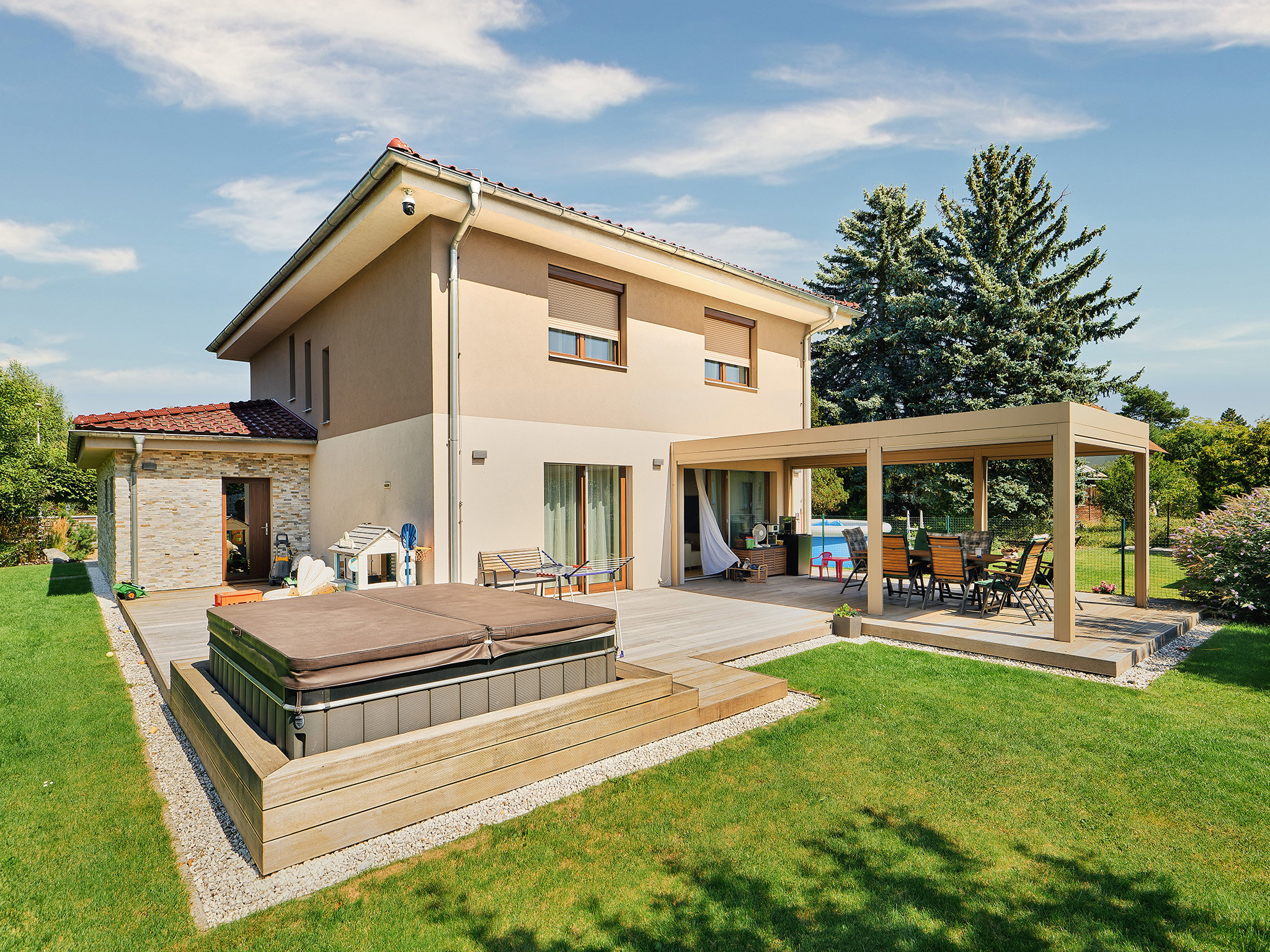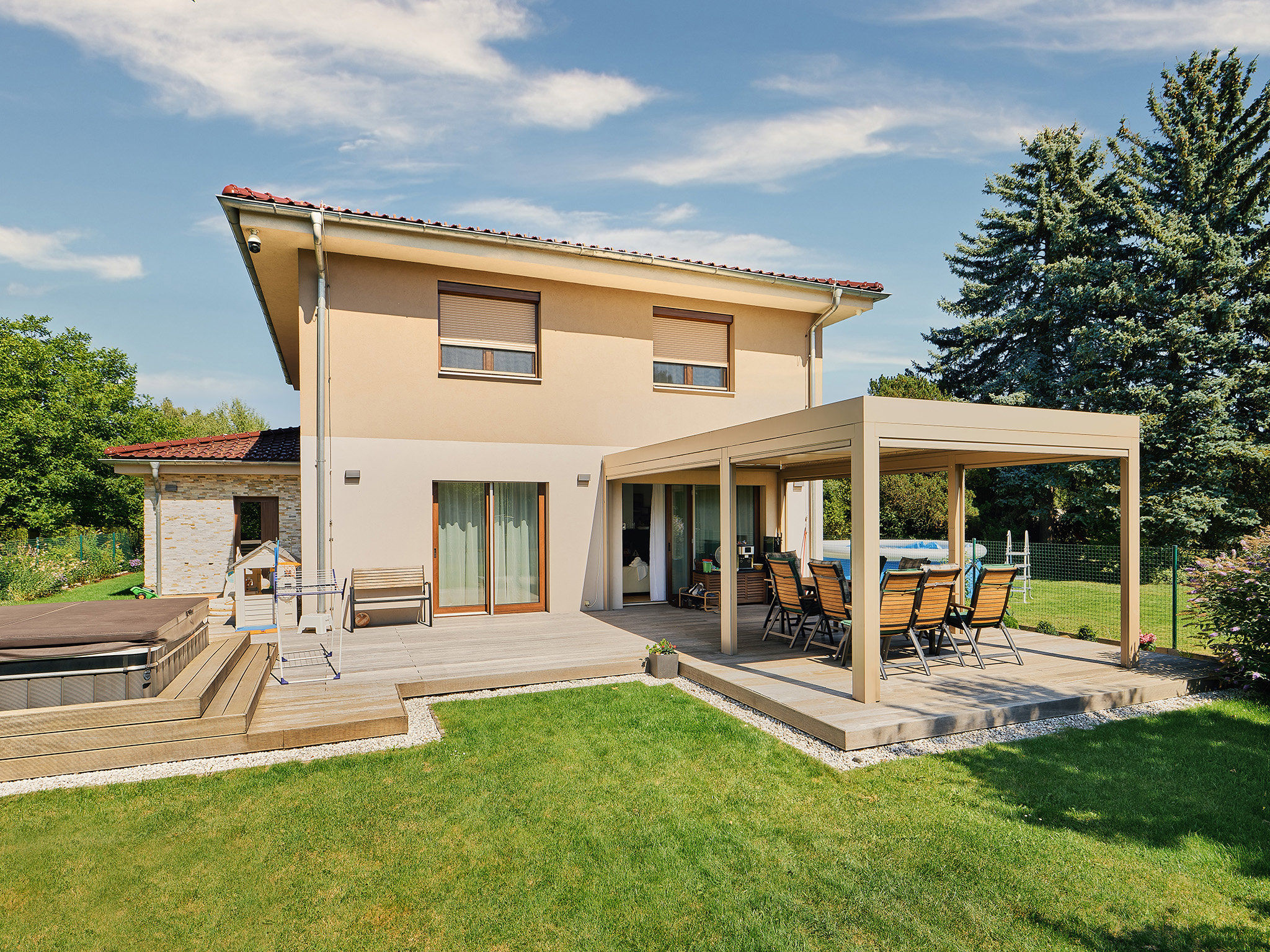 Roletová schránka v nejrozšířenějším „roletovém designu“ je téměř čtvercového tvaru s úkosem 20° na spodní straně. Ve většině případů se podaří schovat roletovou schránku do venkovní špalety tak, aby nevyčnívala z fasády ven. Barvy rolet umožňují vytvářet zajímavé barevné kombinace oken, rolet a fasády.